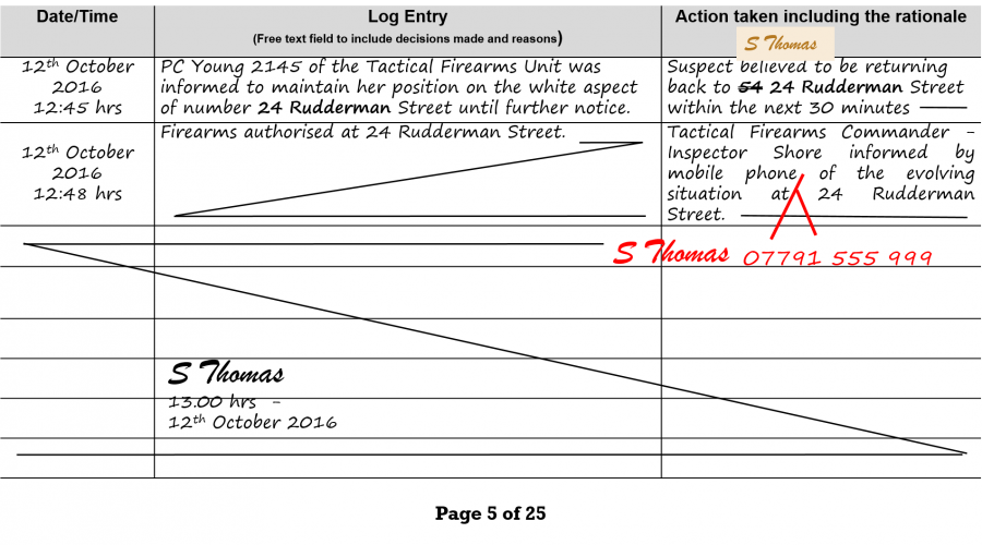 There is a significant difference in taking formal minutes at a meeting and recording critical decisions during an emergency. The eminent Solicitor Advocate, Mark Scoggins (LLP) is very clear in his advice ‘If it is not written down, then it did not happen’ With that in mind, recording decisions and the rationale for taking that decision are critical and most central to any subsequent debrief, inquiry or trial. All decisions must be recorded contemporaneously or not exceeding 24 hours after that decision was taken.